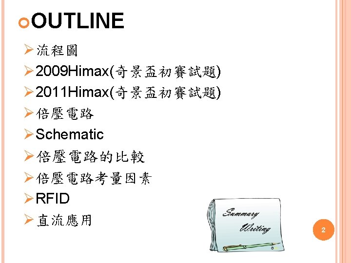 倍壓電路的比較 兩個倍壓電路差在Vb 9 參考資料: “An Active MOS Diode with Vth-Cancellation for RFID Rectifiers” Hans Raben, Johan Borg and Jonny Johansson EISLAB, Dept. of Computer Science and Electrical and Space Engineering, Lulea University of Technology, SE-971 87 Lulea, Sweden.