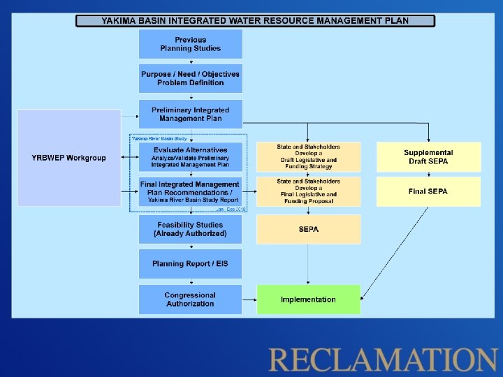 Ecology’s Separate Process • Separate SEPA evaluation • Finalized SEPA with Integrated Water Resource Management Plan (IWRMP) • IWRMP became framework of YRBWEP 2009 Workgroup