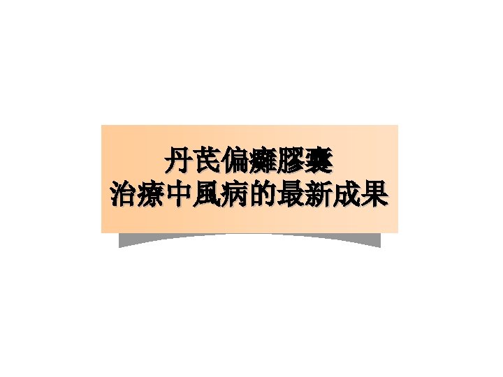 题目:A double-blind, placebo-controlled, randomized phase II pilot study to investigate the potential efficacy of the traditional chinese medicine Neuroaid (MLC 601) in enhancing recovery after stroke (TIERS). 丹芪偏癱膠囊治療中風後恢復期的二期臨床研究:隨機、對照、雙盲試驗 雜誌:cerebrovascular diseases 腦血管病雜誌 瑞士 影响因子: 3. 041 作者:Keng He Kong, 新加坡,宏茂橋醫院 結論:丹芪偏癱膠囊可以顯著改善中風患者神經功能和生活能力,而且對後迴圈梗 死和嚴重的中風患者也有良好的治療效應 Hemiplegia capsules can significantly improve neural function and stroke patients, but also for life cycle and serious infarction after stroke patients also has a good effect.