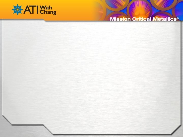 The Outline of this presentation will be: Allegheny Technologies: • Mission • Scope • Future Investments • Technical Depth ATI Wah Chang: • History • Elemental Focus • Niobium Production • Product Forms • Manufacturing Capabilities • Common Alloys • Superconducting Projects • Current Supply Status • Material Challenges • Standards • Laboratory Capabilities
