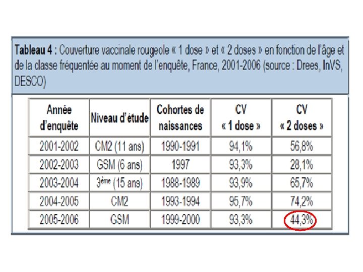 Incidence de la rougeole selon l’âge en 2008 -2010 Depuis 2008 o Augmentation des cas chez l’enfant < 1 an ( x 3) , incidence : 50/100. 000 o Et chez le jeune adulte ( x 5), incidence : 15/100. 000