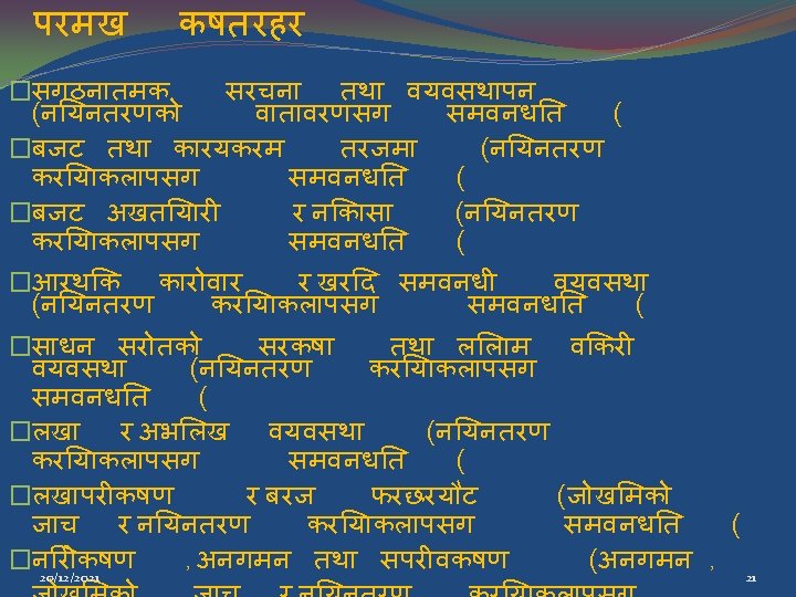 a]? h" / a]? h" km 5of}{6 � a]? h' sf] kl/efiff �; fdf. Go cy{df a]? h" eg]sf] sfg'gsf] /Lt gk'¥of. O{ jf sfg"g ljkl/t ul/Psf lg 0 f{o, sf/f]jf/ Pjd sf/jfx. L xf]. �cfly{s sfo{ljlw P]g, @)%% df æa]? h" e. Ggfn] k|rlnt sfg'g adf]lhd k'¥ofpg' kg]{ /Lt gk'¥of. O{ sf/f]af/ u/]sf] jf /f. Vg' kg]{ n]vf g/fv]sf] tyf clgoldt jf a]dgfl; a tl/sfn] cfly{s sf/f]af/ u/]sf] eg. L n]vfk/LIf 0 f ubf{ cf}+Nof. OPsf] jf 7 x¥of. OPsf] sf/f]af/ ; D´g' k 5{Æ eg]/ kl/efiff ul/Psf] 5. �jf: tjdf cf. Gtl/s / cl. Gtd n]vfk/LIf 0 f ubf{ b]lvg cfpg] s}lkmotx? (Audit Observations) g} a]? h" xf]. 20/12/2021 30