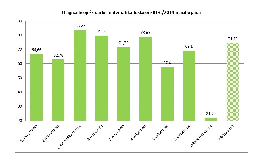 Valsts pārbaudes darbu matemātikā rezultātu salīdzinājums šī gada 6. klasei ar viņu iegūtajiem rezultātiem 3. klases pārbaudes 10 darbā 9, 5 9 8, 5 8 7, 5 7 2010. /2011. 9 2013. /2014. 8, 4 6, 5 7, 8 7, 7 6 5, 5 5 6. a 6. b