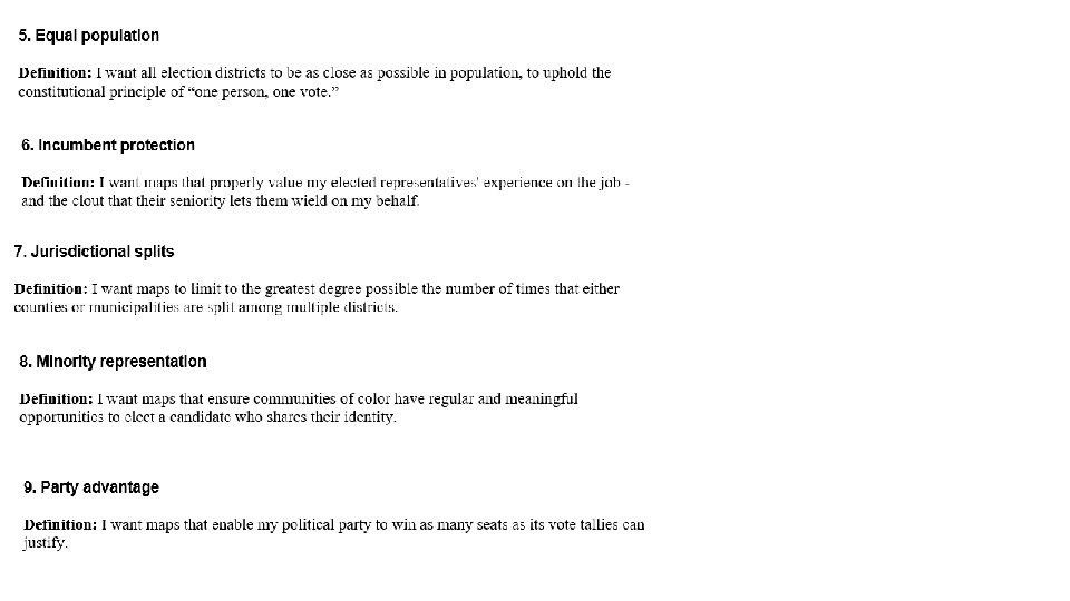 Federal criteria Two federal rules govern redistricting in every state. Equal population The U. S. Constitution requires that each district have about the same population: each federal district within a state must have about the same number of people, each state district within a state must have about the same number of people, and each local district within its jurisdiction must have about the same number of people. Race and ethnicity Section 2 of the Voting Rights Act blocks district lines that deny minority voters an equal opportunity "to participate in the political process and to elect representatives of their choice. " It applies whether the denial is intentional, or an unintended end result. Courts essentially test whether the way that districts are drawn takes decisive political power away from a cohesive minority bloc otherwise at risk for discrimination. The other major federal redistricting rule concerns race and ethnicity. Sadly, redistricting has been abused to dilute racial and ethnic minorities' voice at the polls. One ploy is called "cracking": splintering minority populations into small pieces across several districts, so that a big group ends up with a very little chance to impact any single election. Another tactic is called "packing": pushing as many minority voters as possible into a few super-concentrated districts, and draining the population's voting power from anywhere else. Other tactics abound.
