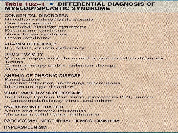 Clinical manifestation • Anemia • Thrombocytopenia • Leucopenia with qualitative defect • Progress to AML