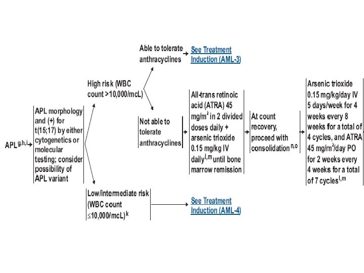 APL(M 3) • • leukopenia DIC t(15; 17): PML-RARA fusion gene ATRA (all-trans retinoic acid) – retinoic acid syndrome • Arsenic trioxide • Chemotherapy • Good prognosis