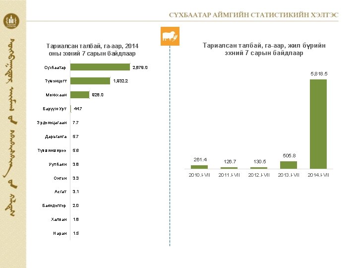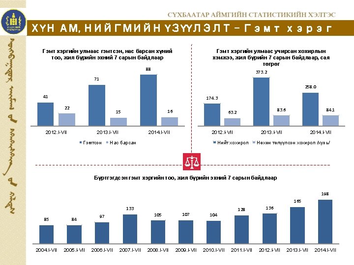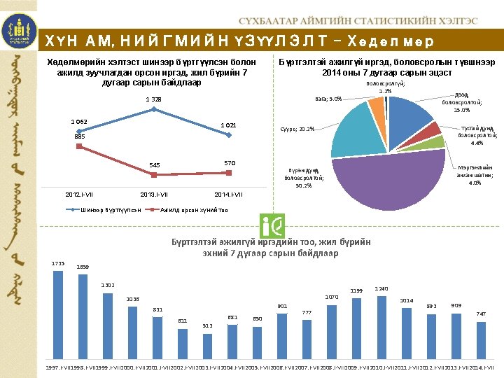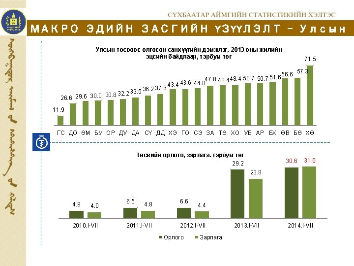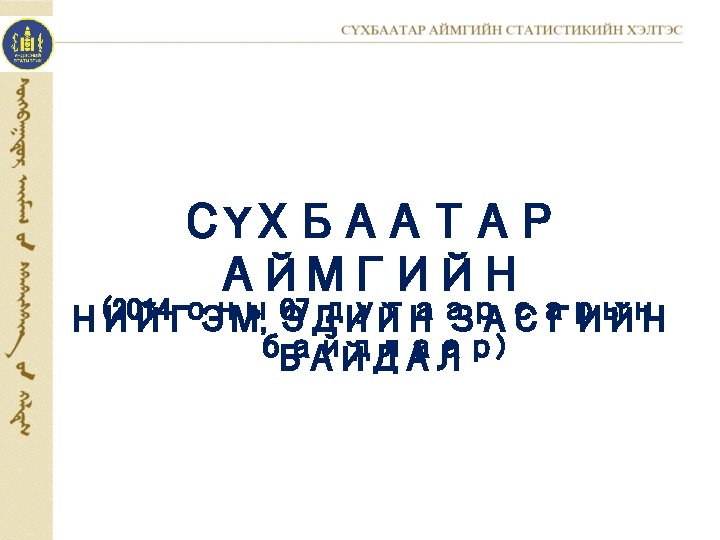 2013 XII 2013 IVII 2014 IVII 2013 XII Slides: 12 Download presentation МАКРО ЭДИЙН ЗАСГИЙН ҮЗҮҮЛЭЛТ ЗЭЭЛ, ХАДГАЛАМЖИЙН ҮЛДЭГДЭЛ. банкуудаар, сарын эцэст, сая. төг Зээлийн өрийн үлдэгдэл Банк 2013. XII 2013. I-VII Хадгаламжийн үлдэгдэл 2014. I-VII 2013. XII 2013. I-VII 2014. I-VII ÕÀÀÍ 47 034. 5 41 407. 4 52 867. 2 17 950. 6 14 225. 6 15 439. 1 ÕÀÑ 3 350. 4 3 185. 5 3 943. 2 3 730. 8 3 695. 9 3 885. 3 Голомт 4 017. 2 2 703. 1 5 618. 7 1 252. 2 758. 4 1 394. 4 19 077. 2 13 563. 7 23 857. 4 10 271. 4 9 885. 9 11 027. 0 11. 6 86 298. 1 33 205. 0 Төрийн банк Капитал банк Дүн 73 479. 3 60 859. 7 Зээлийн өрийн үлдэгдэл, тэрбум төг 86. 3 2010. I-VII 2011. I-VII 2012. I-VII 2013. I-VII 2014. I-VII 31 793. 4 23. 6 39. 6 15. 1 28 565. 8 Хадгаламжийн үлдэгдэл, тэрбум төг 31. 8 28. 6 60. 9 27. 5 47. 6 15. 5 11. 2 2010. I-VII 2011. I-VII 2012. I-VII 2013. I-VII 2014. I-VII www. facebook. com/statistic Вэб сайт: sukhbaatar. nso. mn Майл хаяг: sukhbaatar@nso. mn 12
