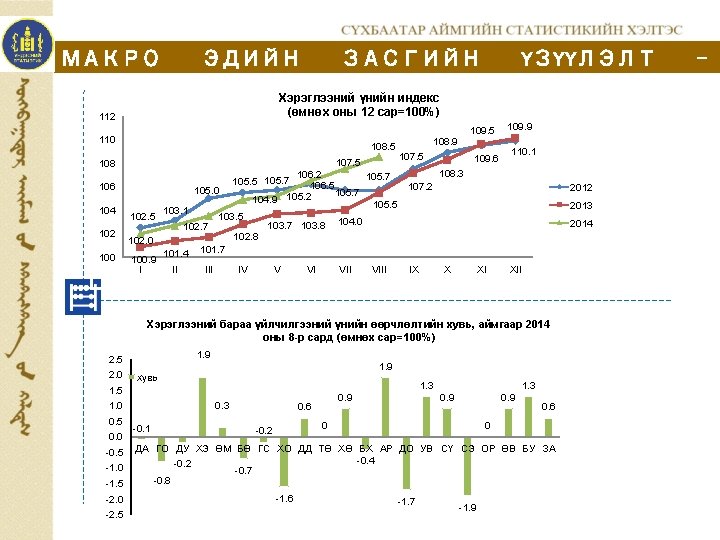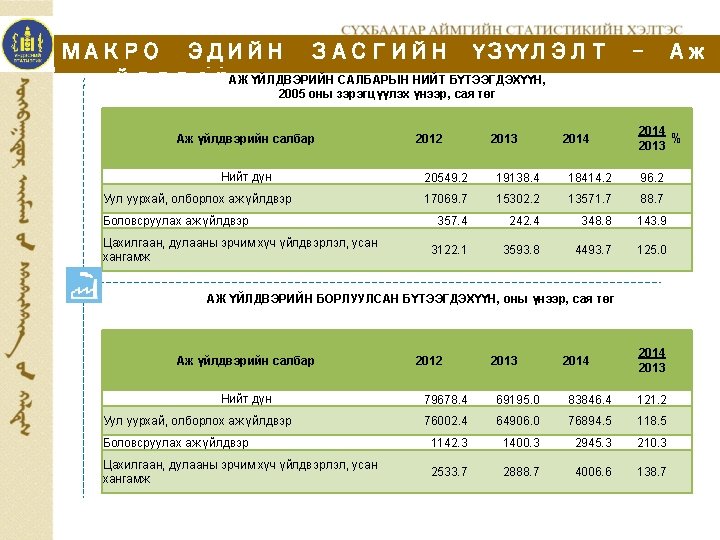 2013 XII 2013 IVIII 2014 IVIII 2013 XII Slides: 12 Download presentation МАКРО ЭДИЙН ЗАСГИЙН ҮЗҮҮЛЭЛТ ЗЭЭЛ, ХАДГАЛАМЖИЙН ҮЛДЭГДЭЛ. банкуудаар, сарын эцэст, сая. төг Зээлийн өрийн үлдэгдэл Банк 2013. XII 2013. I-VIII Хадгаламжийн үлдэгдэл 2014. I-VIII 2013. XII 2013. I-VIII 2014. I-VIII ÕÀÀÍ 47 034. 5 45 234. 5 56 091. 3 17 950. 6 13 240. 1 13 873. 8 ÕÀÑ 3 350. 4 3 447. 8 4 232. 5 3 730. 8 3 560. 7 3 815. 4 Голомт 4 017. 2 2 831. 9 5 719. 3 1 252. 2 836. 2 1 130. 9 19 077. 2 15 598. 4 25 563. 8 10 271. 4 8 903. 1 10 348. 5 352. 4 91 959. 3 33 205. 0 Төрийн банк Капитал банк Дүн 73 479. 3 67 112. 6 Зээлийн өрийн үлдэгдэл, тэрбум төг 92. 0 17. 0 30. 3 2010. I-VIII 2011. I-VIII 2012. I-VIII 2013. I-VIII 2014. I-VIII 26 540. 1 29 180. 8 Хадгаламжийн үлдэгдэл, тэрбум төг 21. 9 67. 1 42. 8 12. 2 10. 5 26. 5 29. 2 14. 7 2010. I-VIII 2011. I-VIII 2012. I-VIII 2013. I-VIII 2014. I-VIII www. facebook. com/statistic Вэб сайт: sukhbaatar. nso. mn Майл хаяг: sukhbaatar@nso. mn 12