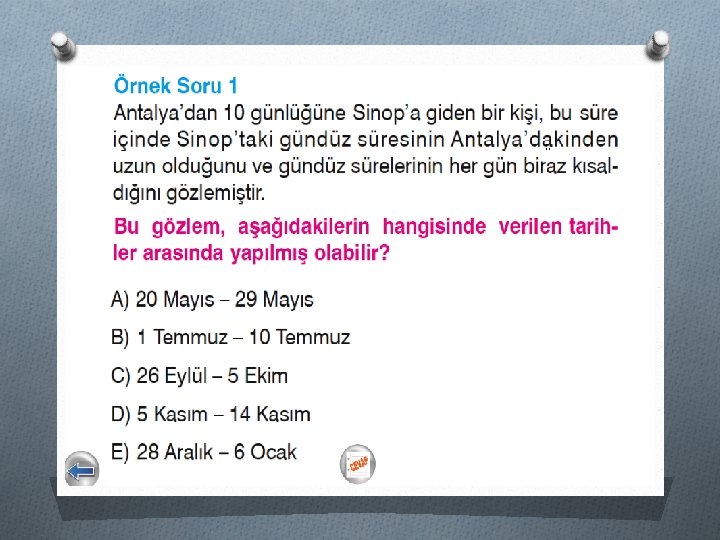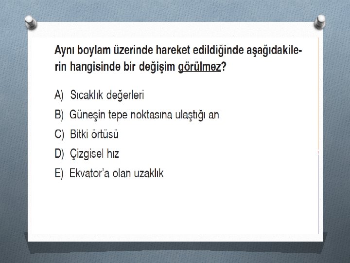 NOT: SORULARIN MATEMATİK KONUM İLE İLGİLİ OLUP OLMADIĞINI ANLAMAK İÇİN ŞU KİLİT İFADELERE BAKMAK GEREKİR yerel saat farkı Rüzgârların esme yönü ve sıcaklığı etkileme durumu Dağların yamaçlarının sıcaklık durumu cephesel yağışlar güneş ışınlarının geliş açısı gölge boyu gece - gündüz süreleri ortak saat Mevsimler