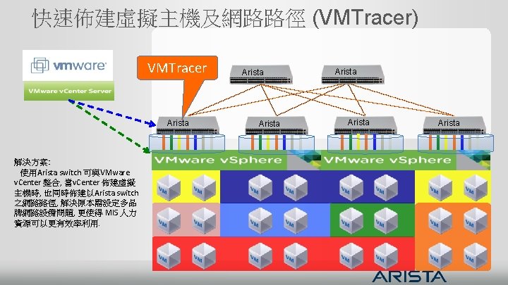 Log for VM add and delete on Arista switch Jul 7 08: 37: 11 7150 S Vm. Tracer: %VMTRACERSESS-6 -ADD_VMENTRY: VM Server 1 nic 網絡介面卡 1 mac 00: 56: 97: 00: 3 e portgroup dv. PG_IN_V 101 vlan 101 switch dv. Switch_IN_ACC host 192. 168. 180. 1 datacenter ABC-DC intf Ethernet 4 Jul 7 08: 56: 29 7150 S Vm. Tracer: %VMTRACERSESS-6 -DEL_VMENTRY: VM Server 1 nic 網絡介面卡 1 mac 00: 56: 97: 00: 3 e portgroup dv. PG_IN_V 101 vlan 101 switch host datacenter intf Ethernet 4