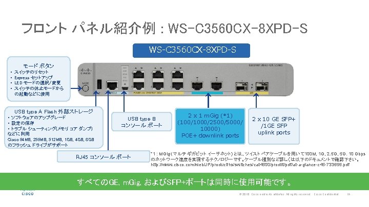 Multigigabit Ethernet (m. Gig) 〜 WS-C 3560 CX-8 XPD-S のみ対応 〜 © 2016 Cisco and/or its affiliates. All rights reserved. Cisco Confidential 38