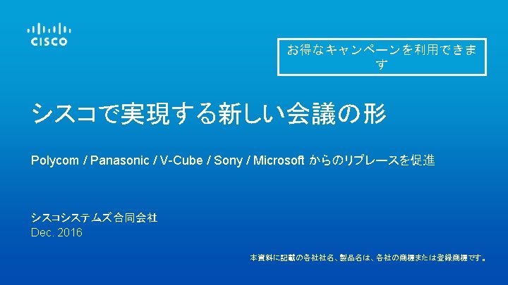 超お得なキャンペーンをご利用ください © 2016 Cisco and/or its affiliates. All rights reserved. Cisco Public 29