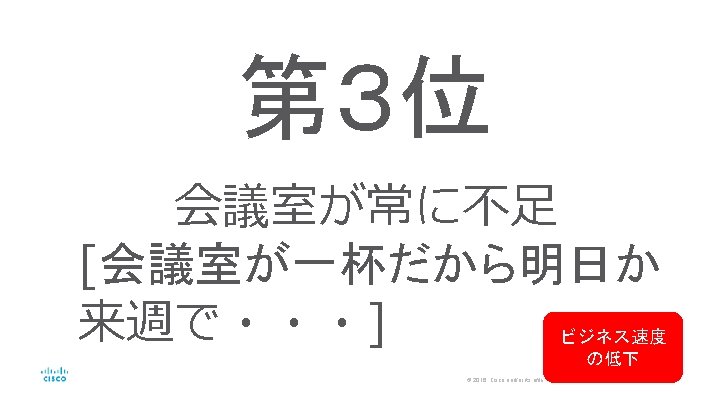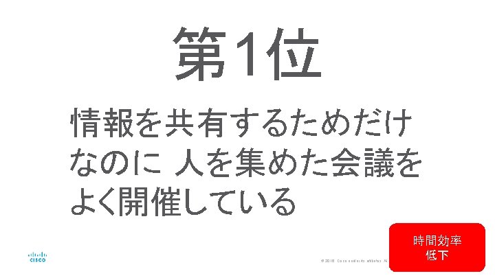 第 2位 Web会議やSkype for Business を使ってるけど、 音や映像の品質が悪い 投資効果 低下 © 2016 Cisco and/or its affiliates. All rights reserved. Cisco Public 8