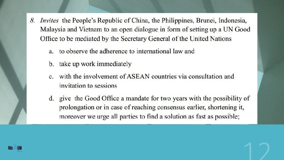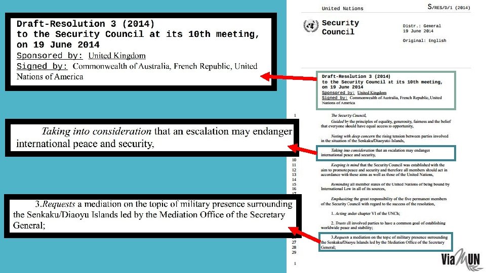 Introducing a Draft Resolution • At least 4 signatory states (+ sponsors) • pass it to the Chairs for checking • only the template gets accepted If approved the working paper becomes a draft resolution will be given to the Council in digital form