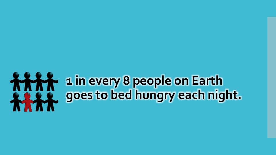 Meals frequently skipped 9 million people, including 3 million children, live in homes that experience hunger where meals are frequently skipped or individuals go without food for a whole day. [U. S. Department of Agriculture, Household Food Security in the United States, 2008]