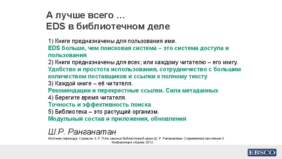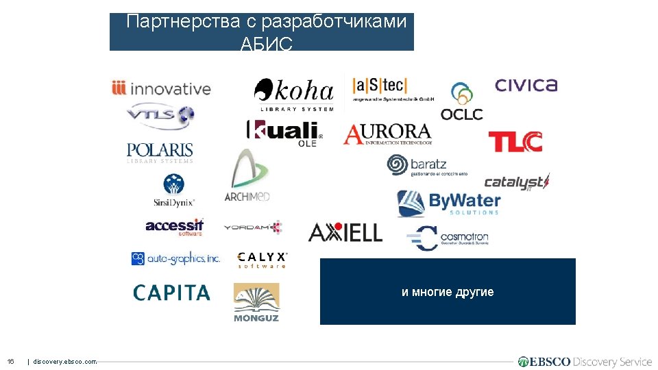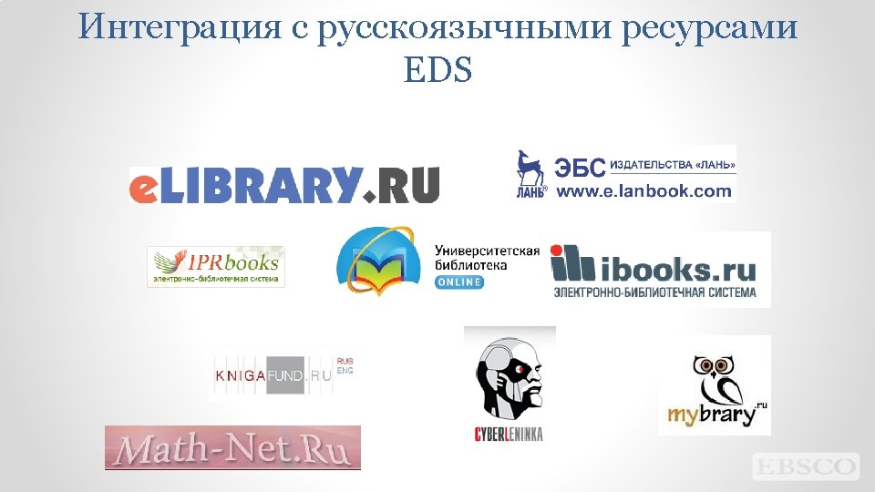 Интеграция EDS в системы обучения • Blackboard • Moodle • Canvas • Sakai • D 2 L 38 | discovery. ebsco. com
