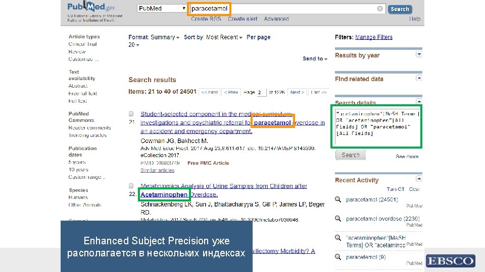 Mapping: Тезаурусы и контролируемая лексика Пример 1: learning aids • learning aids соответствует: − educational media (ERIC) − educational resources (Geo. Ref) − instructional materials (MLA International Bibliography) − instructional media (Psyc. INFO) − teaching aids & devices (Education Abstracts, Education Source) − teaching materials (Me. SH/MEDLINE/Pub. Med, CINAHL) 21 | discovery. ebsco. com