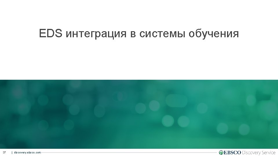 EDS интеграция в интерфейсы систем с открытым кодом • Примеры: − Blacklight – University of Virginia - http: //www. library. virginia. edu/ − Vu. Find – Hebrew University of Jerusalem - http: //hufind. huji. ac. il/ − Drupal – Rice University - http: //library. rice. edu 36 | discovery. ebsco. com