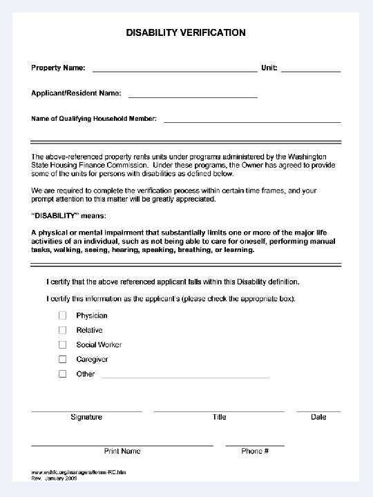Marketing and Good Faith Efforts • The 30 Day Rule – This rule pertains to Special-Needs Commitments. Units must be held vacant, in rent ready condition and actively marketed for a minimum of 30 days prior to renting to a household that does not meet the special-needs definition. A Special. Needs Vacancy Report is required in these situations. Exceptions may be made in certain circumstances only with WSHFC approval. • Good Faith Efforts – Defined as actively marketing any vacant housing units which are necessary to meet commitments. Does not apply to Elderly, Transitional or Homeless units.