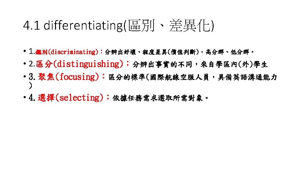 4. Analyze(分析) • 4. 1 differentiating(區別、差異化) • 4. 2 Organizing(組織) • 4. 3 Attributing(歸因)