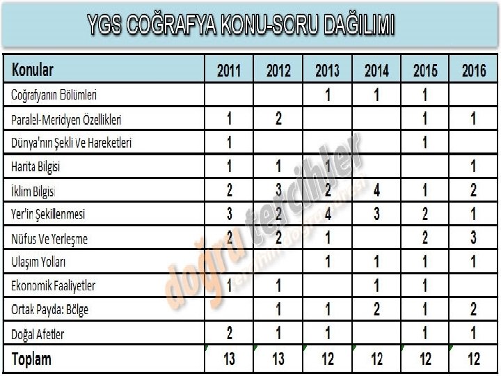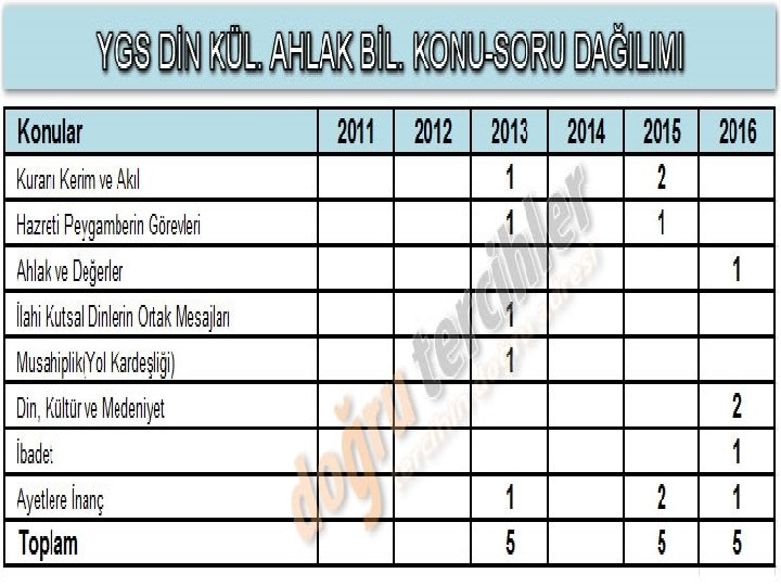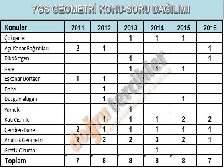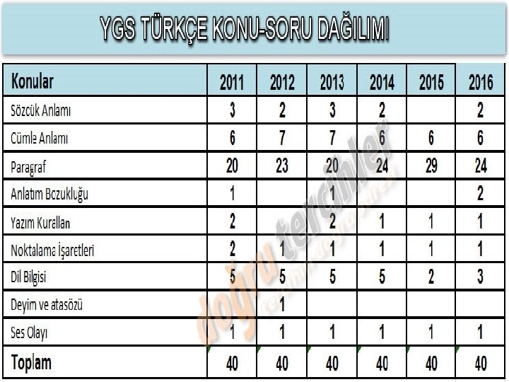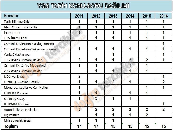 ŞİMDİ GEÇEN YILLARDA DERS KONULARA GÖRE SORU DAĞILIMLARINI VE 2017 YGS’de BU DAĞILIMIN NASIL OLACAĞINI GÖRECEĞİZ !!!
