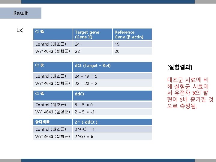 Result Ex) Gene X 9 Relative m. RNA level 8 7 6 5 4 3 2 1 0 A B