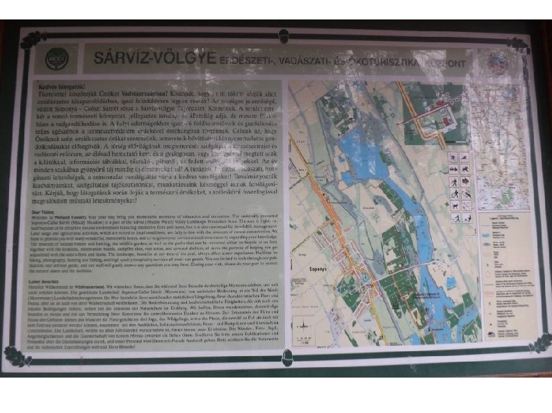 Soponyai Ökocentrum A Sárvíz-völgye élővilágának megismerését szolgálják a természetrajzi és vadászati múzeum, az élő-vad bemutatókert és a kerékpárutak, melyek mentén kilátók, információs táblák és fedett esőbeálló helyek kerültek elhelyezésre. Az év minden időszakában gyönyörű táj mindig új élményeket nyújt! A mintegy 100 km hosszú, 3 -5 km széles Sárvíz-völgye szívében terül el az 1000 ha kiterjedésű, országos jelentőségű, védett Soponya-Csőszi Sárrét.