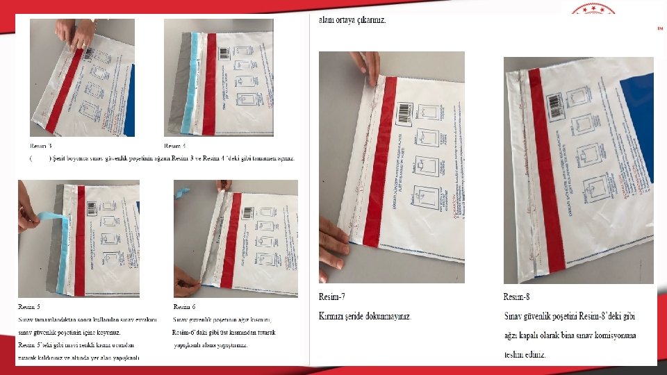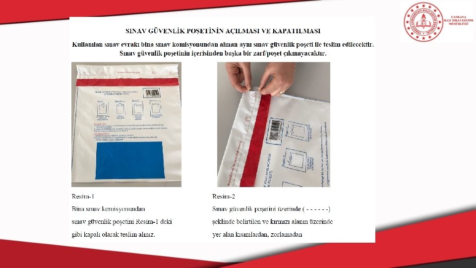 SINAV BİTİMİNDE; ü Bina sınav komisyonu, sınıflardan gelen sınav evrakı dönüş zarflarını, dönüş sınav kutularına koyarak seri numaralı güvenlik kilidi ile bu kutuları kapatacak ve görevli kuryelere tutanakla teslim edecektir. Talep edilmesi durumunda, sınav oturumları tamamlandıktan sonra soru kitapçıkları veli ya da öğrenciye verilebilecektir. Talep edilmeyen soru kitapçıkları millî eğitim müdürlükleri tarafından okullarda kullanılmak üzere toplanacaktır. ü Kurallara uymadığı tespit edilen öğrencilerin sınavı, salon yoklama listesindeki tutanak bölümü doldurularak iptal edilecek ve sınava devam etmelerine izin verilmeyecektir. Ancak, salon görevlileri diğer öğrencilerin dikkatini dağıtmamak, zaman kaybetmelerine yol açmamak açısından gerekli görürse kural dışı davranışlarda bulunanlara sınav sırasında uyarıda bulunmayabilecektir. Salon yoklama listesindeki tutanak alanının yetersiz gelmesi durumunda bu öğrencilerin kusurları ve kimlik bilgileri ayrı bir tutanakla sınav evrakına eklenecek ve sınavları değerlendirme işlemi yapılmaksızın geçersiz sayılacaktır. Bu konularda yapılan itirazlar dikkate alınmayacaktır.