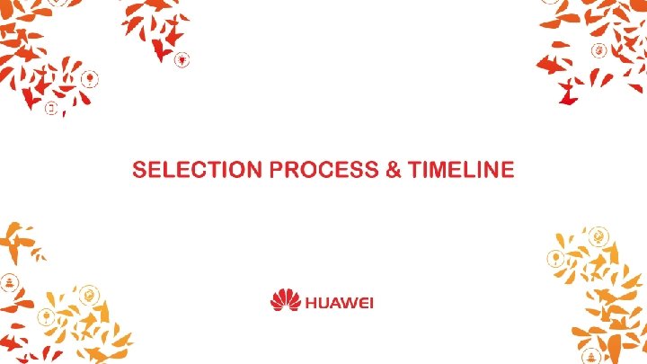 Timeline 12 April Submit your application (CV & video of max. 3 minutes) to your University faculty 30 April Shortlisting of applications by University faculty, University faculty sends recommendations to Huawei 2 -17 May Huawei interviews the recommended students in person and makes the final selection Before end of May Huawei informs the university and students of the final selection Early July Briefing session at Huawei Brussels 13 July Departure to China (Beijing, Shenzhen)