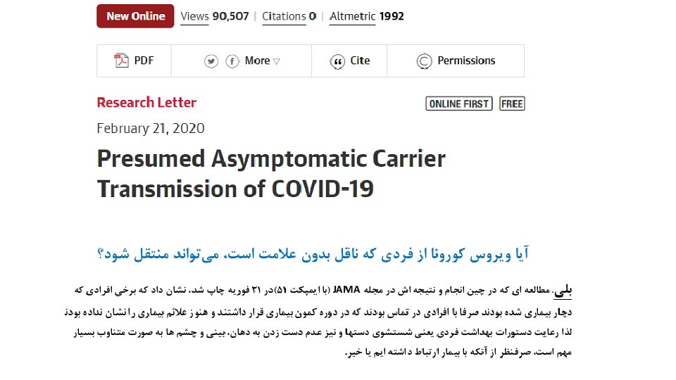 • In coming weeks, if the virus begins to spread through U. S. communities, health authorities want to be ready to adopt school and business closures like those undertaken in Asian countries to contain the disease • ﺩﺭ ﻫﻔﺘﻪ ﻫﺎی آﺘی ﺍگﺮ ﻭیﺮﻭﺱ ﺷﺮﻭﻉ ﺑﻪ گﺴﺘﺮﺵ ﺩﺭ آﻤﺮیکﺎ کﻨﺪ ﺑﺎیﺪ آﻤﺎﺩﻩ ﺑﺎﺷیﻢ کﻪ ﻣﺜﻞ کﺸﻮﺭﻫﺎی آﺴیﺎیی ﺑﻪ ﺩﻧﺒﺎﻝ ﺗﻌﻄیﻠی ﻣﺪﺍﺭﺱ ﻭ ﻣﺮﺍکﺰ ﺗﺠﺎﺭی ﺑﺎﺷیﻢ
