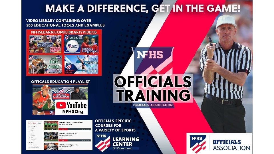 NATIONAL FEDERATION OF STATE HIGH SCHOOL ASSOCIATIONS § NFHS (located in Indianapolis, IN – Est. 1920): • National leader and advocate for high school athletics and performing arts programs. • Serves 51 state associations, 19, 500 high schools and 12 million student participants. • Writes playing rules for 17 high school sports for boys and girls. • Offers online education courses for high school coaches, officials, parents, students and others. • Ensures that students have opportunity to enjoy healthy participation, achievement and good sportsmanship in education-based athletics. www. nfhs. org