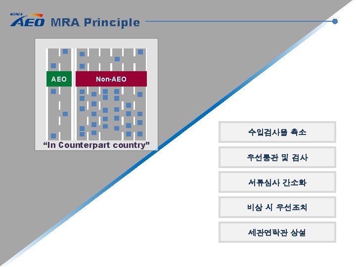 MRA Principle AEO Non-AEO “In Counterpart country” MRA Mutual Recognition Arrangement