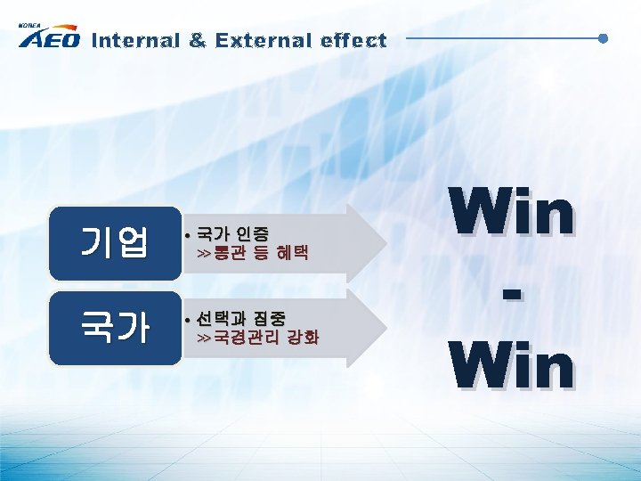 Contract : Example AEO = Global Standard 계약 조건, 기업 신뢰도 Signaling, 매출증진 기회, … ***