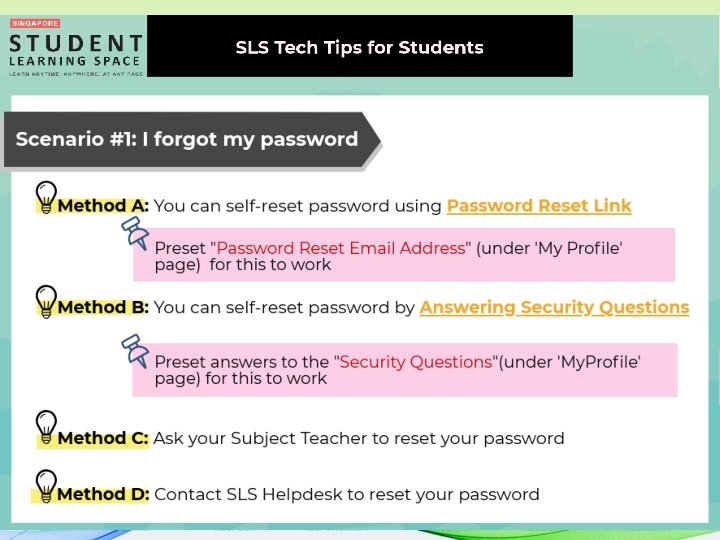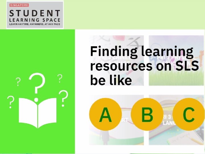 • SLS is an online learning platform that aims to provide every student (from Primary to Pre-U) with equal access to quality, curriculum-aligned learning resources anytime and anywhere. • With SLS, students can drive their own learning according to their own interests.
