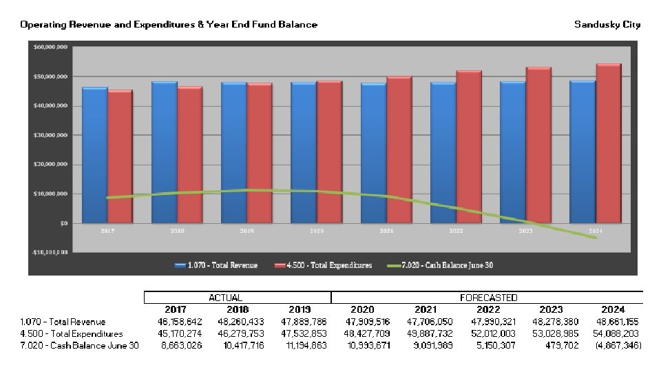 Sandusky City School District Forecasted Revenues and Expenditures for Fiscal Year 2020 through 2024