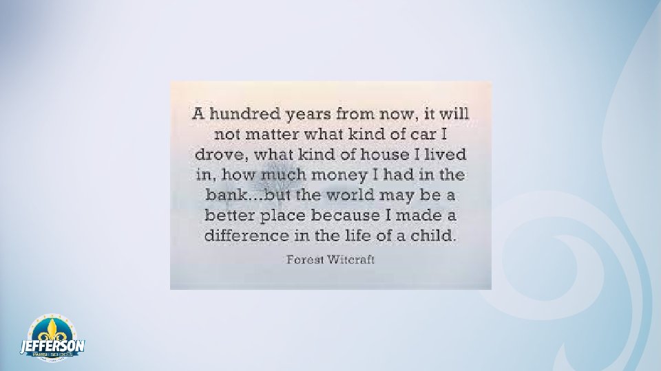And of course… “No significant learning occurs without a significant relationship” Dr. James Comer