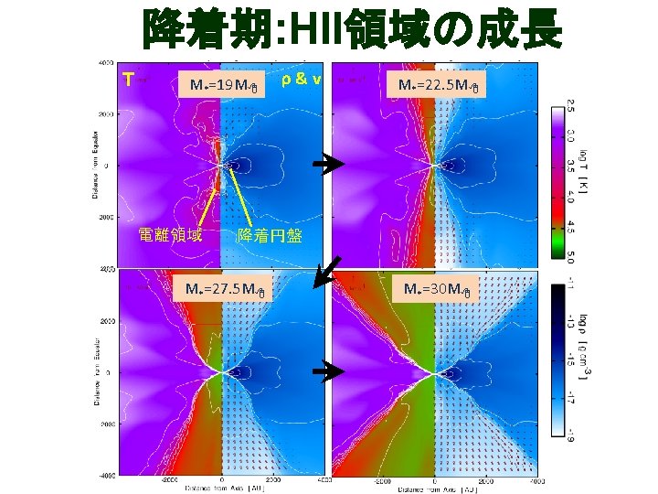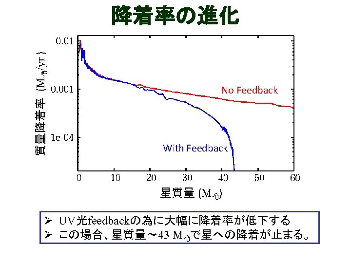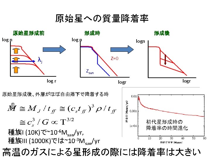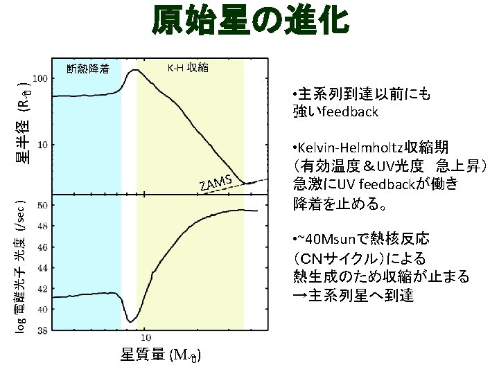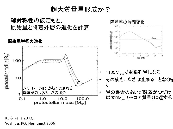 stellar radius : R* ( R 8) New Branch at high accretion rate Hosokawa & KO in prep. stellar mass: M* ( M 8) Ø New evolutionary branch with higher rates of > 0. 01 M 8/yr Ø The star continues to expand, never contracting to the ZAMS