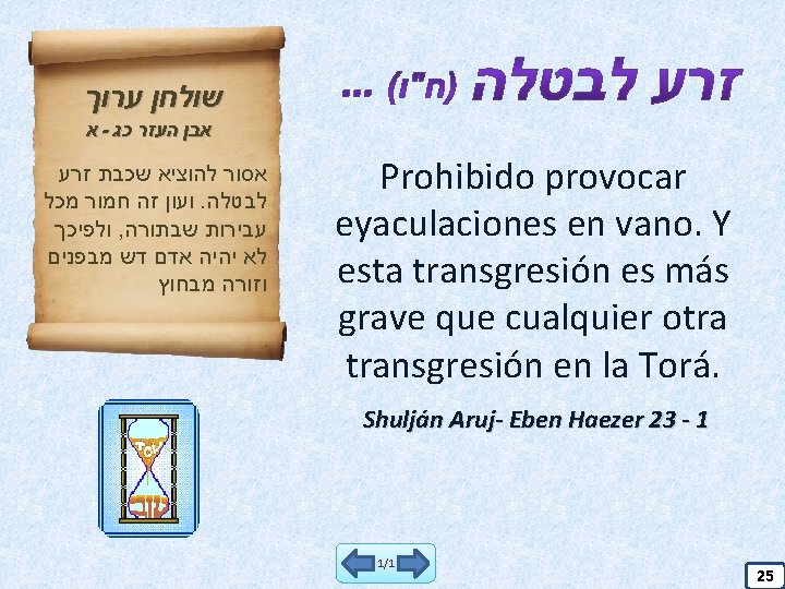 22 El que estudia y no cumple Tzedaká 24 El que transgrede Shabbat 12 Reprimenda 25 Eyaculación en vano 16 Dar Berajot 26 Honrar a los Padres 17 Mentir 28 Separación 18 El que habla obscenidades 31 Luego me arrepiento… 2 El que influencia para bien al público 5 Salir