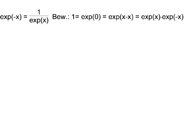 Exponentialfunktion, Logarithmus, Potenz Reihe: Folge: exp(x) ex exp(1) e D= Die Funktionalgleichung lautet: ex 1. ex 2 = ex 1+x 2