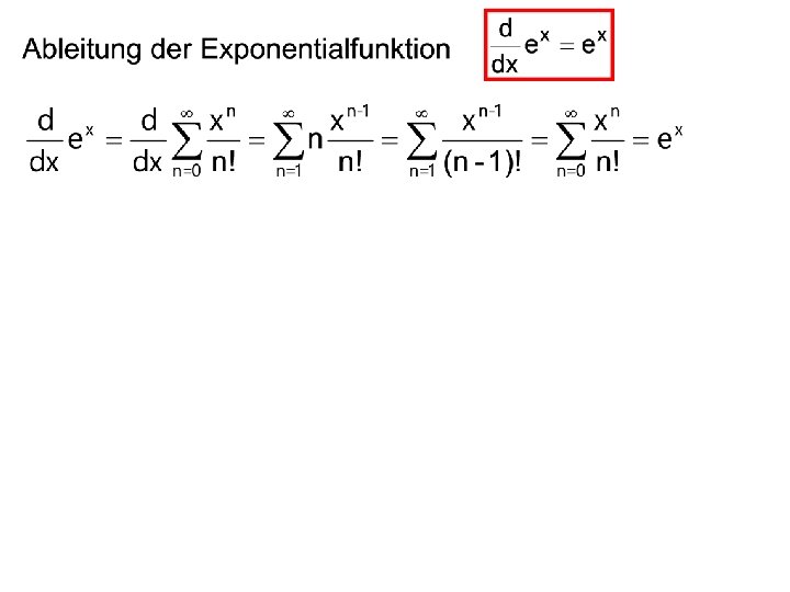 24 Die Exponentialfunktion Exponentialfunktion Logarithmus Potenz Reihe Folge