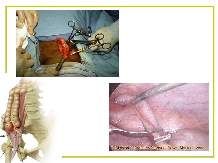 üConventional Open Operation §Grid-iron incision §Lower midline abdominal incision ü Laparoscopic Technique
