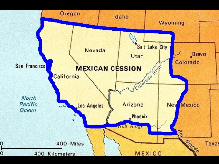 MEXICAN CESSION the area - give Mexico to the U. S. after the present day states of CA, N CO, & WY.