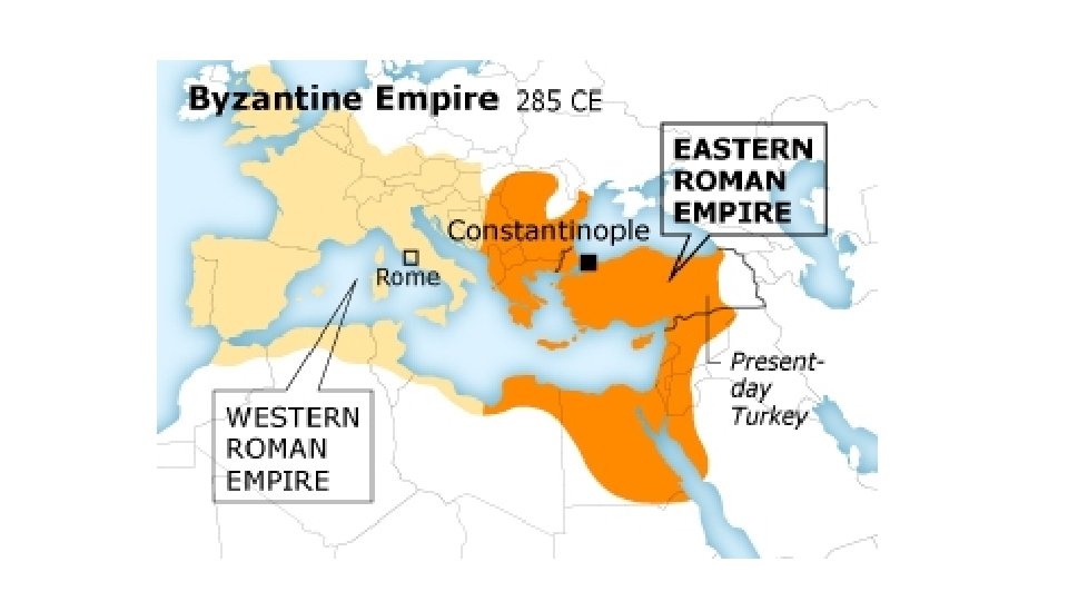#25. What were the differences and one similarity between Western Europe during the Middle Ages and the Byzantine Empire? Western Europe (Holy Roman Empire) Not very organized. Run by various kingdoms (Frankish Kingdoms—the Franks were a dynasty) Similarities Eastern Europe (Byzantine Empire) Christians—very strong Very organized into one cohesive empire—the faith, just different views on Byzantine Empire. how to run the Church Roman Catholic Church Eastern Orthodox Church Capital/ Center of Trade and Power: Rome Capital/ Center of Trade and Power: Constantinople Less educated. Source of Knowledge comes from Bible. Only educated people: some nobles (people with money), and church members (clergy, Pope, monks, bishops, etc) More Educated. Pull from Ancient “Classical Sources” such as Greece and Rome. More widespread Christianity Most speak Latin—hurts trade so those in Western Europe couldn’t communicate with others as easily because they didn’t have a common language. This means less wealth in Western Europe. Speak Greek—which impacts trade because thanks to Alex the Great, most of the people in that part of the world were able to speak or at least understand Greek. So they had a common language. Thus, more wealth.