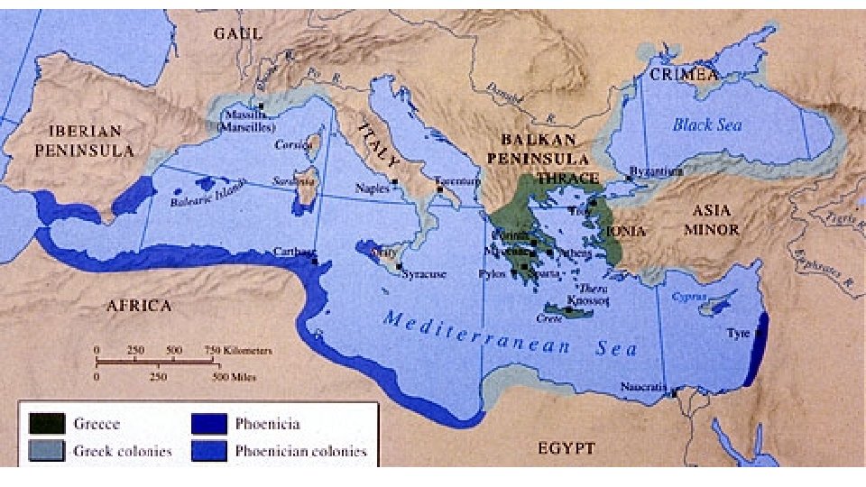 • Phoenicians & Greece • First the Phoenicians were the great sailors who invented the 22 letter alphabet that influenced the Greeks writing and then Romans. • Both were located along the Mediterranean Sea. • Therefore more developed fishing, great ships, and an extensive trade network along the Mediterranean sea. • Greece had a number of islands and a more rocky terrain which impacted them politically because they weren’t unified as a people—thus leading to the creation of City-States.