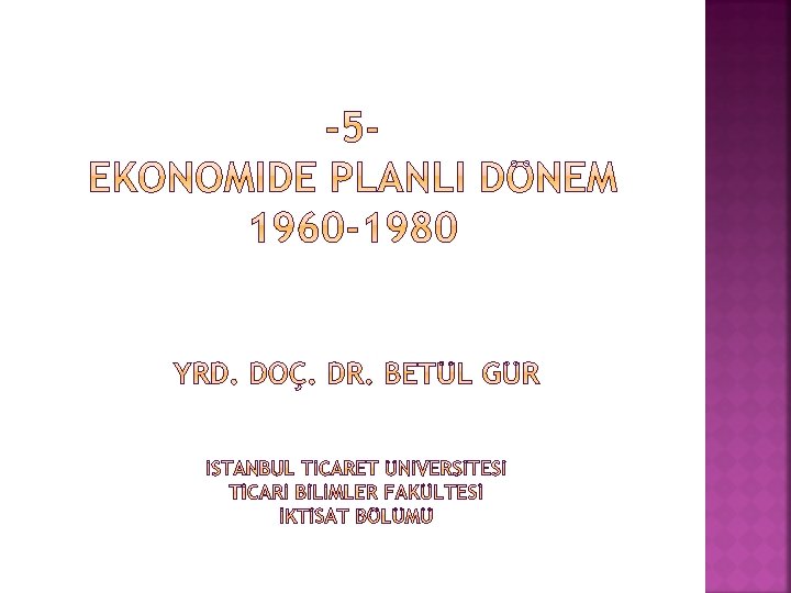 AMAÇ : kalkınma ARAÇ : planlama Yrd. Doç. Dr. Betül GÜR / TÜRKİYE EKONOMİSİ Saturday, October 31, 2020 5