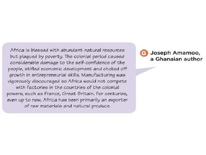 How developed are African countries? Task: • Split your page into a table like the one below. • On slides 7 -12, you will see quotes from people around the world about Africa. Summarise these quotes into one of the columns on your table. Challenge: • Do you agree or disagree with this view? • Explain your answers Positive views of Africa Negative views of Africa