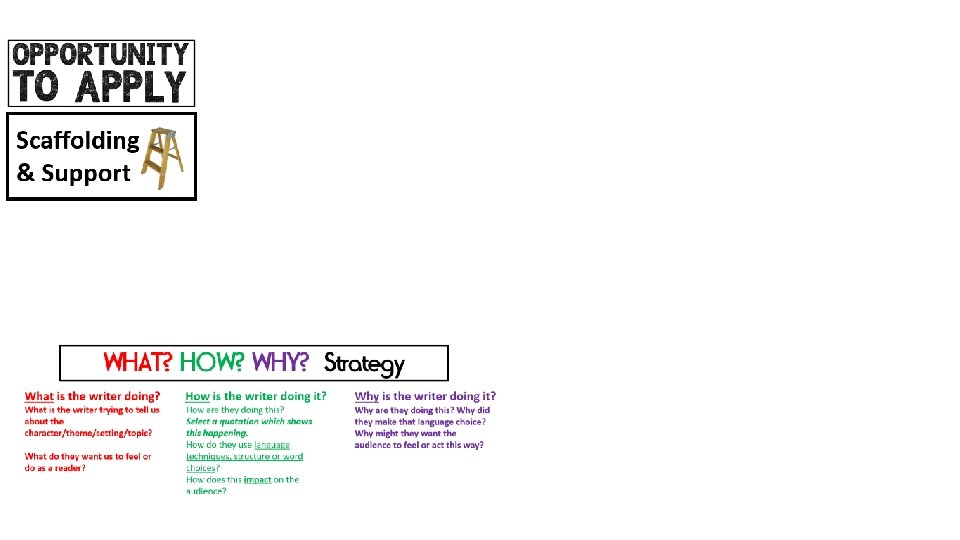 Opportunity to Apply Expectations Listen carefully to the instructions you are given, ask questions before the silent time begins. Put O 2 A in the margin, write the question if asked to, underline this neatly. All students work in complete silence. If you have a target line, draw it neatly with a ruler and a highlighter. If you get stuck, look back at previous work to help you get going. There is usually some scaffolding or support available, use this to help. If you are completely stuck and cannot continue without help, put your hand up.