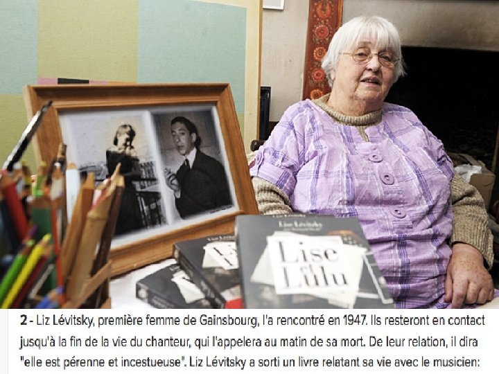 Lise Levitzki - Serge Gainsbourg 40 ans d’amour Ssa première femme dans les Côtes d’Armor à 84 ans à écrit Lise et Lulu
