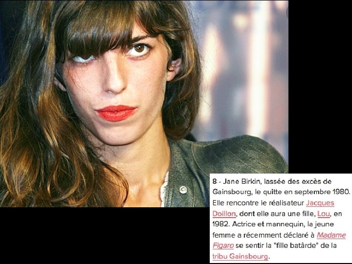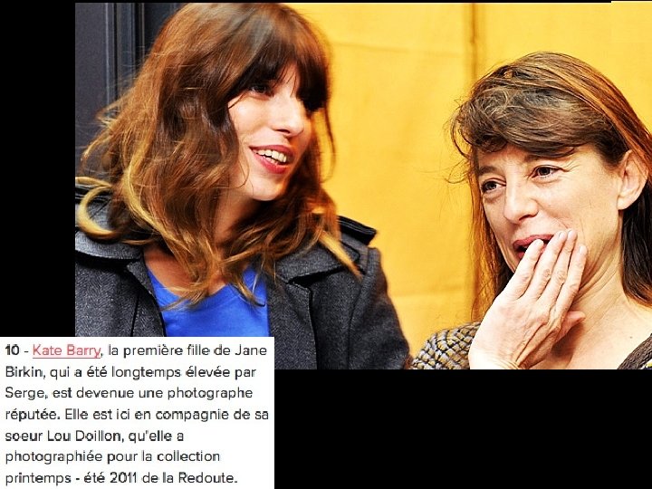 Charlotte Gainsbourg (1971) Actrice et chanteuse Fille de Jane Berkin et Serge Gainsbourg Sœur utérine de Kate Barry et Lou Doillon Kate Barry Lou Doillo