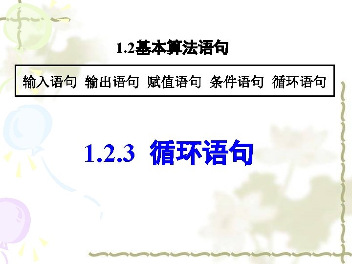 3. P 33页A组T 3. 程序 INPUT “n=”; n i=1 S=0 WHILE i<=n S=S+(i+1)/i i=i+1 WEND PRINT “S=”; S END